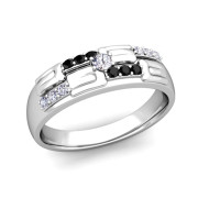 Checkerboard Black and White Diamond Mens Wedding Band in Platinum, 6.25mm