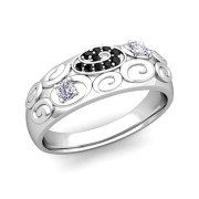 Swirl Black and White Diamond Mens Wedding Ring Band in 14k Gold, 7.75mm