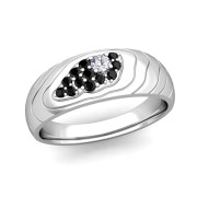 Contour Black and White Diamond Mens Wedding Ring Band in 14k Gold, 7.25mm