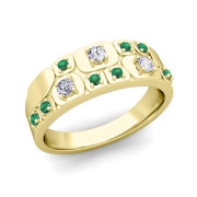 Plaid Diamond and Emerald Mens Wedding Ring Band in 18k Gold, 7.25mm