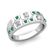 Plaid Diamond and Emerald Mens Wedding Ring Band in Platinum, 7.25mm