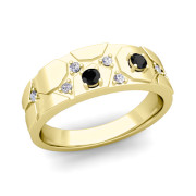 Geometric Black and White Diamond Mens Wedding Ring Band in 18k Gold, 7.25mm