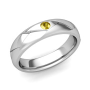 Solitaire Yellow Sapphire Anniversary Ring in Platinum Shiny Wedding Band, 5mm
