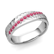 Ruby Wedding Anniversary Ring in 14k Gold Hammered Rolling Wedding Band, 6mm