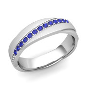 Sapphire Wedding Anniversary Ring in 14k Gold Brushed Rolling Wedding Band, 6mm