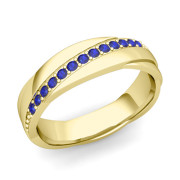 Sapphire Wedding Anniversary Ring in 18k Gold Shiny Rolling Wedding Band, 6mm