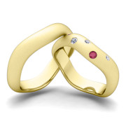Matching Wedding Band in 18k Gold Curved Diamond and Ruby Wedding Ring