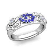 Swirl Diamond and Sapphire Wedding Ring Band in 14k Gold, 5.5mm