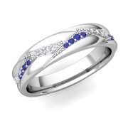 Wave Wedding Band in 14k Gold Diamond and Sapphire Ring, 5mm