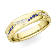 Wave Wedding Band in 18k Gold Diamond and Sapphire Ring, 5mm