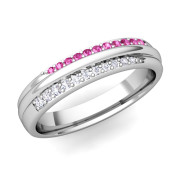 Brilliant Pave Diamond and Pink Sapphire Wedding Ring in 14k Gold, 3.5mm