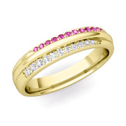 Brilliant Pave Diamond and Pink Sapphire Wedding Ring in 18k Gold, 3.5mm