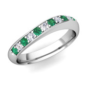 Curved Diamond and Emerald Wedding Ring in 14k Gold, 4mm