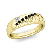 Rolling Wave Black and White Diamond Wedding Ring in 18k Gold, 5.25mm