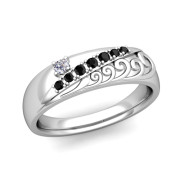 Rolling Wave Black and White Diamond Wedding Ring in Platinum, 5.25mm