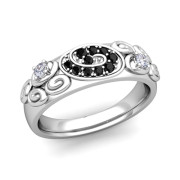Swirl Black and White Diamond Wedding Ring Band in Platinum, 5.5mm