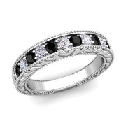 Vintage Inspired Black and White Diamond Wedding Ring Band in 14k Gold