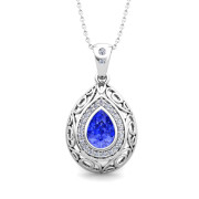 Vintage Inspired Diamond and Pear Ceylon Sapphire Necklace in 14k Gold
