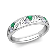 Vintage Inspired Diamond and Emerald Wedding Ring in 14k Gold 4.5mm