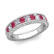 Vintage Inspired Diamond and Ruby Wedding Ring Band in 14k Gold