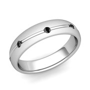 Black Diamond Wedding Ring in 14k Gold Satin Wave Wedding Band, 5mm