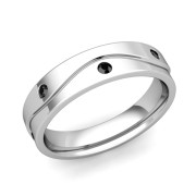 Wave Black Diamond Wedding Anniversary Ring in 14k Gold Shiny Ring, 5mm