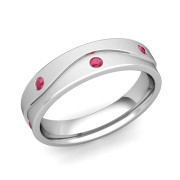 Wave Ruby Wedding Anniversary Ring in Platinum Satin Ring, 5mm