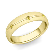 Yellow Sapphire Wedding Ring in 18k Gold Brushed Wave Wedding Band, 5mm