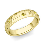 Yellow Sapphire Wedding Ring in 18k Gold Hammered Wave Wedding Band, 5mm