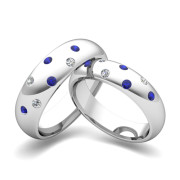 Matching Wedding Bands: Scattered Diamond and Sapphire Wedding Ring in Platinum