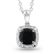 Cushion Cut Black Onyx Necklace in 10k White Gold, Diamond Accented
