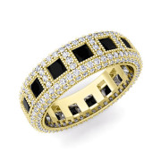 Pave Diamond and Princess Cut Black Diamond Eternity Band in 18k Gold, 6mm