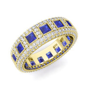 Pave Diamond and Princess Cut Blue Sapphire Eternity Band in 18k Gold, 6mm