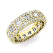 Pave Diamond and Princess Cut Diamond Eternity Band in 18k Gold, 6mm