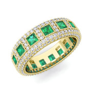 Pave Diamond and Princess Cut Emerald Eternity Band in 18k Gold, 6mm