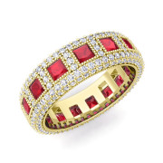 Pave Diamond and Princess Cut Ruby Eternity Band in 18k Gold, 6mm