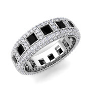Pave Diamond and Princess Cut Black Diamond Eternity Band in Platinum, 6mm