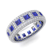 Pave Diamond and Princess Cut Blue Sapphire Eternity Band in Platinum, 6mm