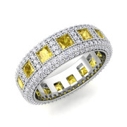 Pave Diamond and Princess Cut Yellow Sapphire Eternity Band in Platinum, 6mm