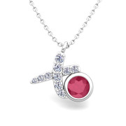Pave Diamond and Solitaire Ruby in 14k Gold XO Pendant