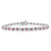 XOXO Pink Sapphire Bracelet in 14k White Gold Tennis Bracelet, 1.35 cttw, 7 inches