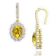 Halo Diamond and Yellow Sapphire Drop Earrings in 18k Gold, 7x5mm