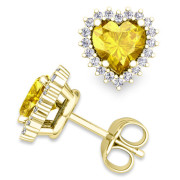 Diamond and Yellow Sapphire Earrings in 18k Gold Heart Earring Studs, 5x5mm