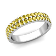 Two Row Diamond and Yellow Sapphire Wedding Ring Band in Platinum